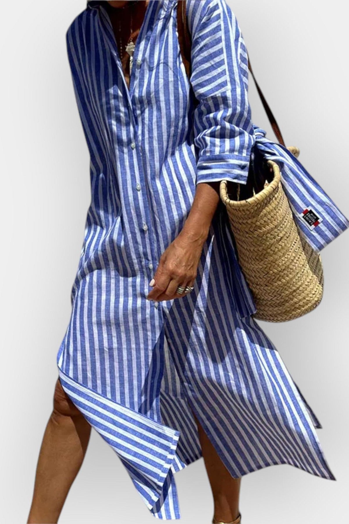 Luna | Stribet skjortekjole forener klassisk elegance med nutidig lethed. Hver detalje afspejler håndværkets omtanke og en arv af tidløst design, mens det stribede mønster i en neutral palet giver et eksklusivt look, der kan bæres år efter år. Stoffet er blødt og åndbart, så du forbliver komfortabel gennem dagen, og den afslappede silhuet flatterer alle kropstyper. Med Luna får du en investering i tidsløs stil og eksklusivitet samt en ejeroplevelse, der føles både fin og funktionel. Produktion i et begrænset antal understreger den velansete samlerappel.