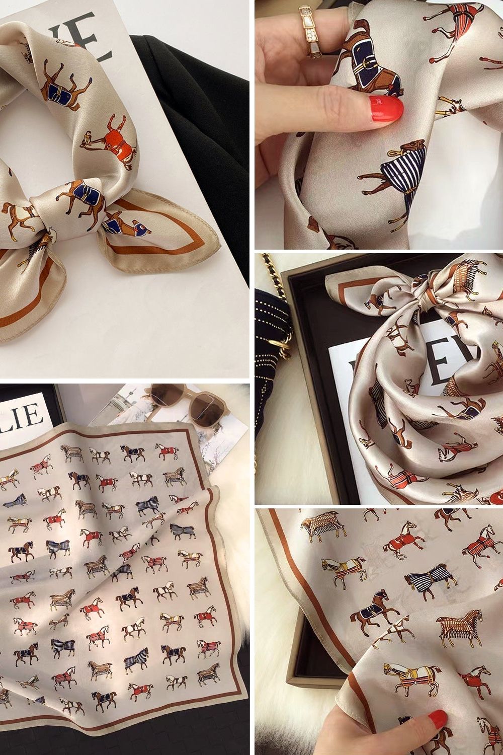 Ronja | Silke sjal beriger din stil med 100% ren silke og en luksuriøs, blank overflade. Det elegante hestetema-mønster tilfører et tidløst præg, der passer til både festlige anledninger og hverdagslooket. Med en størrelse på 53 x 53 cm draperes Ronja som et sofistikeret statement-tillæg. I sæsonkollektionens begrænsede antal bliver Ronja en investering i elegance, der kan gå i arv og blive en klassiker i garderoben.